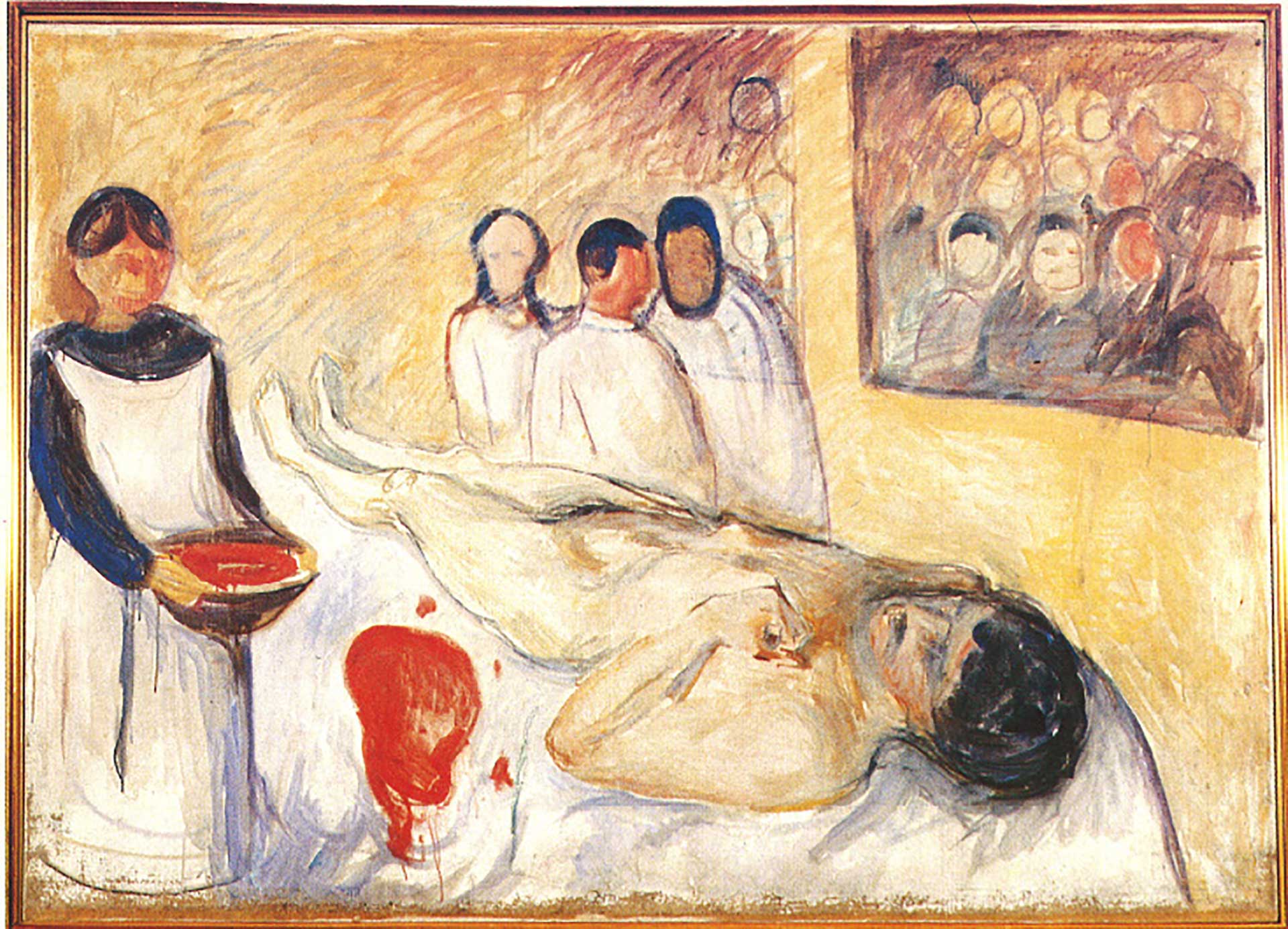 Edvard Munchs liv og kunst er tett forbundet med sykdom. Han ble født svakelig og hjemmedøpt kort tid etter fødselen. Flere i familien døde unge; moren og søsteren Sophie av tuberkulose, broren Andreas, som var lege, av lungebetennelse. Søsteren Laura utviklet psykisk sykdom og bodde lenge på ulike institusjoner. Munch selv slet med nervøse plager og alkoholmisbruk. Han fikk et sammenbrudd i 1908, som førte til sju måneders opphold på en nerveklinikk i København. Han mente selv at han hadde hatt spanskesyken i 1918–1919, og ble i 1930-årene rammet av corpusblødning. Alt dette satte tydelige spor i kunsten hans.