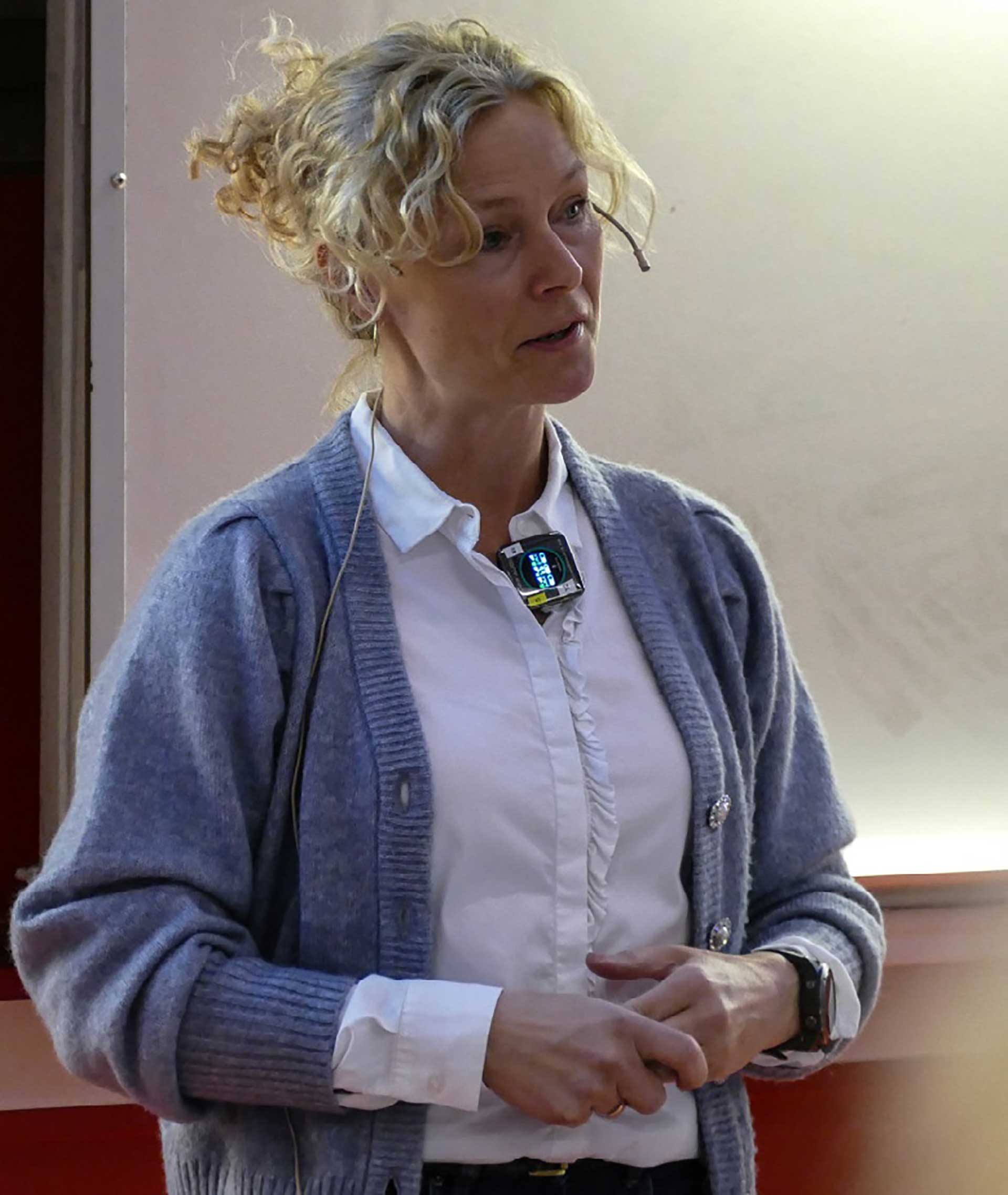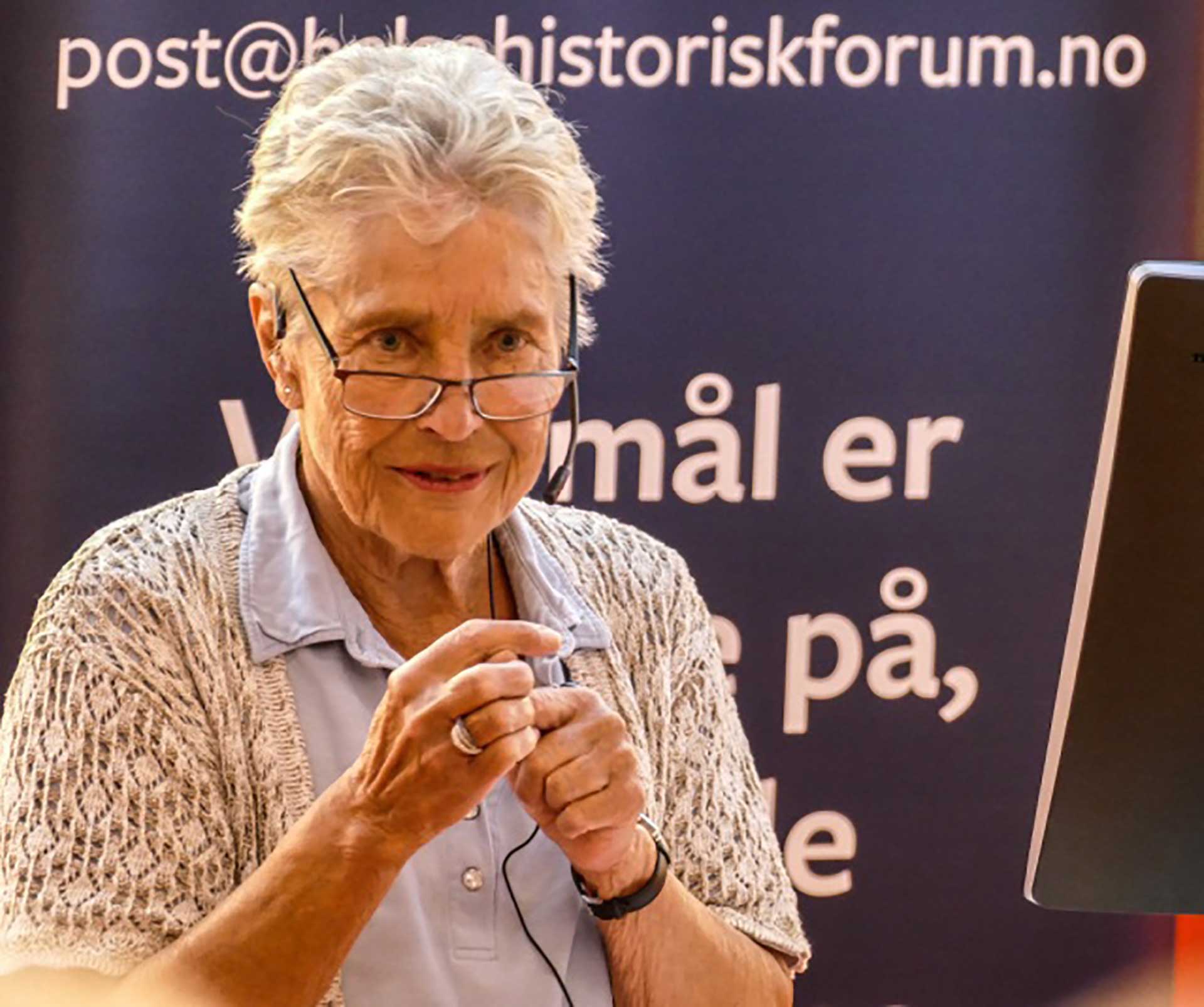 Figur 2. En engasjert Lucie Paus Falck holdt innlegg om sin fars dagbøker fra Koreakrigen.