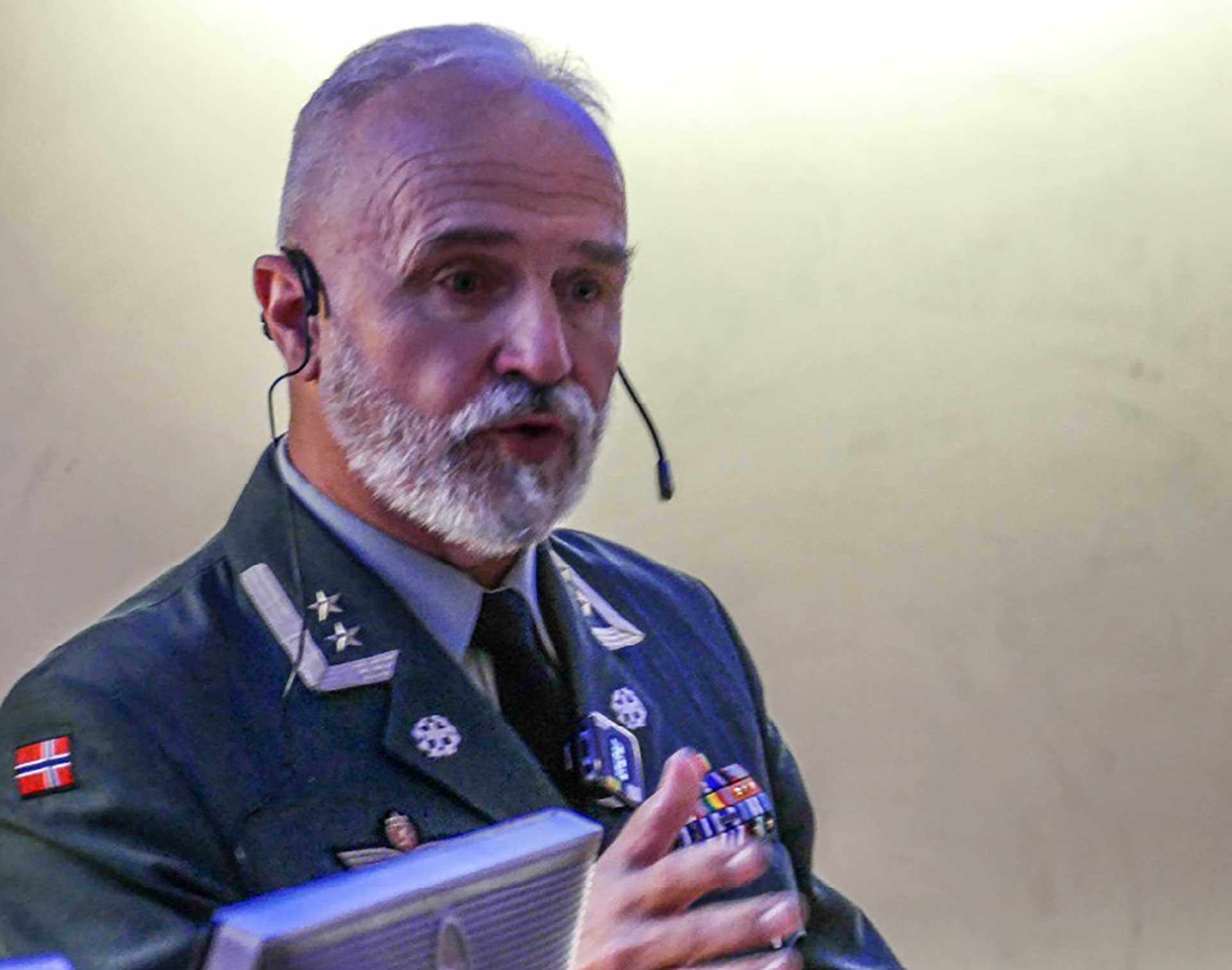 Oberstløytnant Harald-David Meum fra Forsvarets veterantjeneste (figur 5) fortalte om hvordan de tjenestegjørende ved NORMASH ble pionerer for Forsvarets sanitet og arbeidet som skulle foregå videre der. Nye former for kompetanse er blitt trukket inn, blant annet katastrofepsykiatri som har vist seg å ha betydelig forebyggende og oppfølgende potensial.