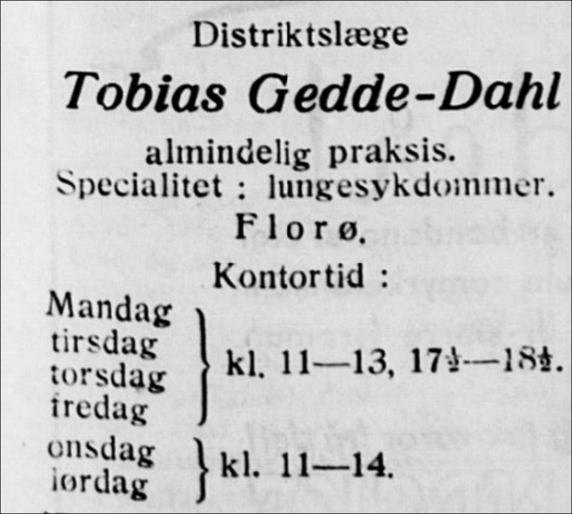 Sindre B. Distriktslege Tobias M. Gedde-Dahl. Årsskrift for Flora Historielag 2014; 14: 79–81.
