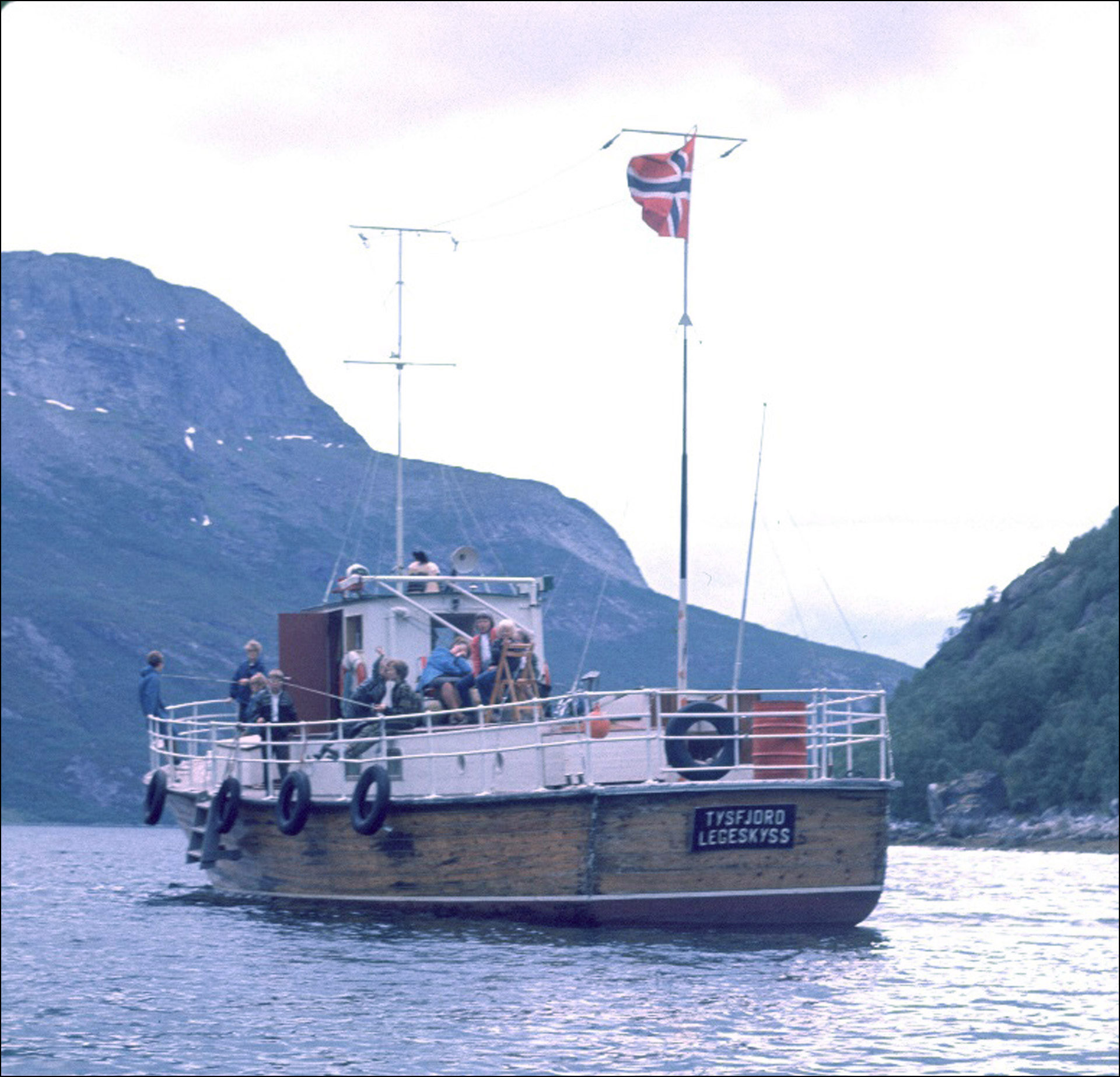 Figur 9. Båten Tysfjord legeskyss var eit uvurderleg hjelpemiddel for distriktslegen. Her bilde i høve eit privat arrangement.