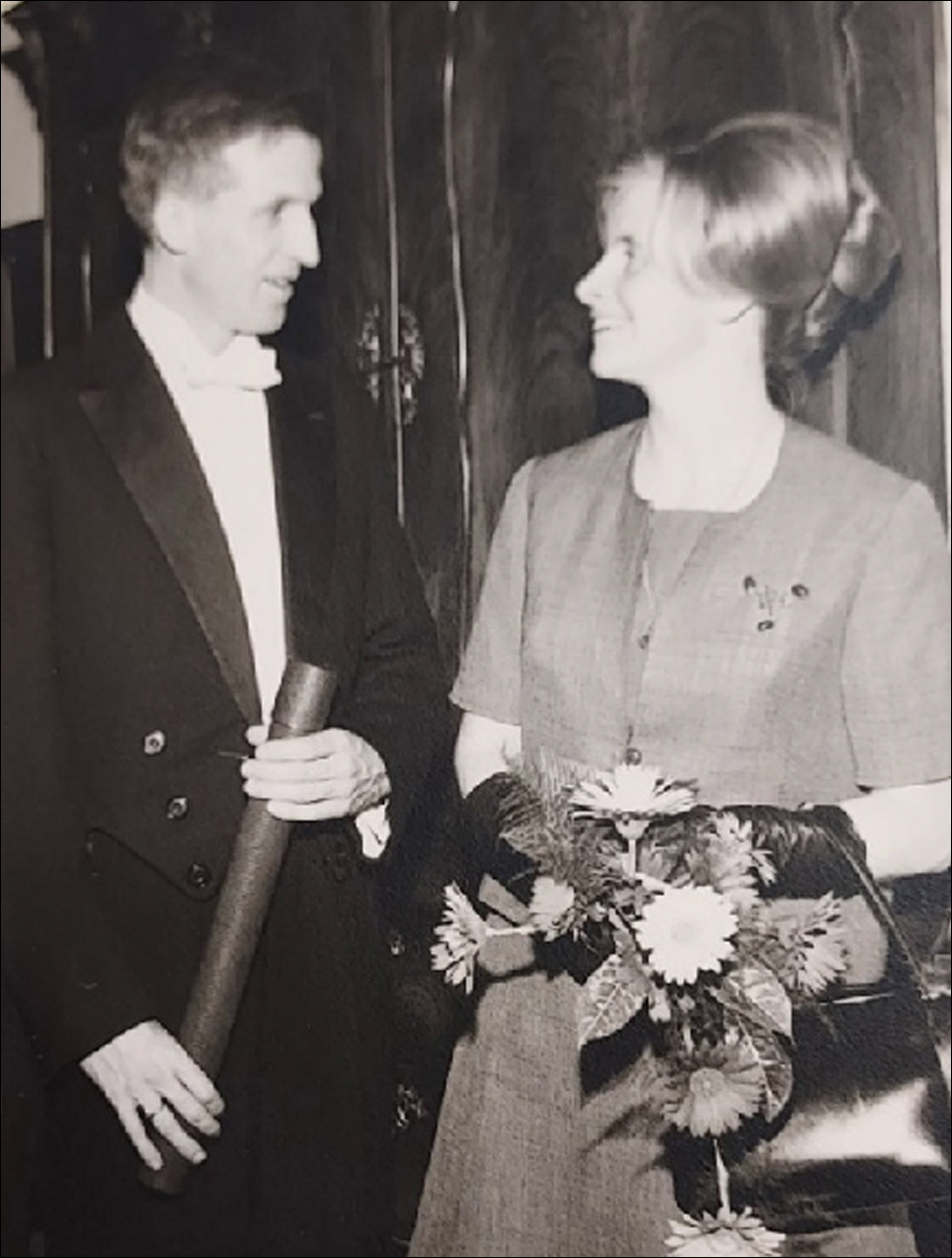 I 2023 fann eg avhandlinga i eit antikvariatet i den Haag (figur 1). Den inneheldt ein kort biografi, med fødselsdato og opplysning om at Folmer arbeidde som vitskapleg medarbeidar ved Institutt for allmennmedisin i Utrecht ved innlevering av avhandlinga. Vinteren 2024 fann ein nederlandsk forskarkollega slektningar til dr. Folmer. Eg fekk kontakt med dottera, Katinka Folmer, som er barnelege. Gjennom henne fekk eg vite at Herman Folmer var i live, og at han ønskte kontakt for å svare på dei spørsmåla eg hadde om doktorgraden hans og opphaldet i Norge.