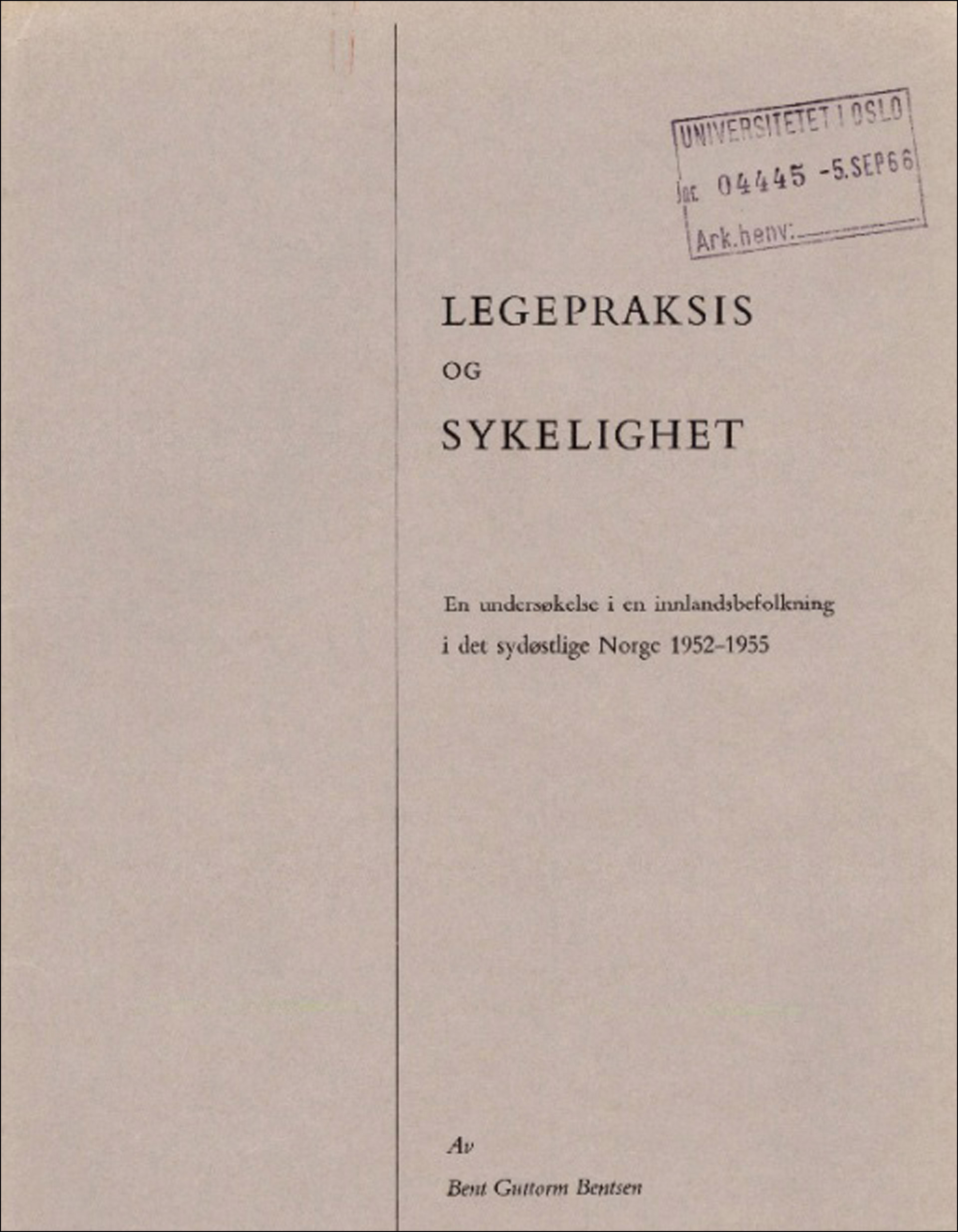 Bentsen BG. Legepraksis og sykelighet. Tidsskrift for Den norske lægeforening 1965; 85: 1086–1094.